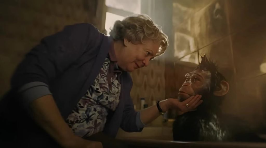 Hay un momento revelador en la película que explica por qué Robbie Williams decide contar su vida bajo el aspecto de un simio: se ve a sí mismo como una versión poco evolucionada del hombre que podría llegar a ser. Además, según contó él mismo en algunas entrevistas, sentía que la gente empatiza más con los animales que con otros humanos. Muy errado no está, digamos todo. Si bien el animal tiene los gestos y manerismos del cantante (en un trabajo de animación por CGI brillante) es cierto que resulta mucho más simpático verlo bajo este aspecto.