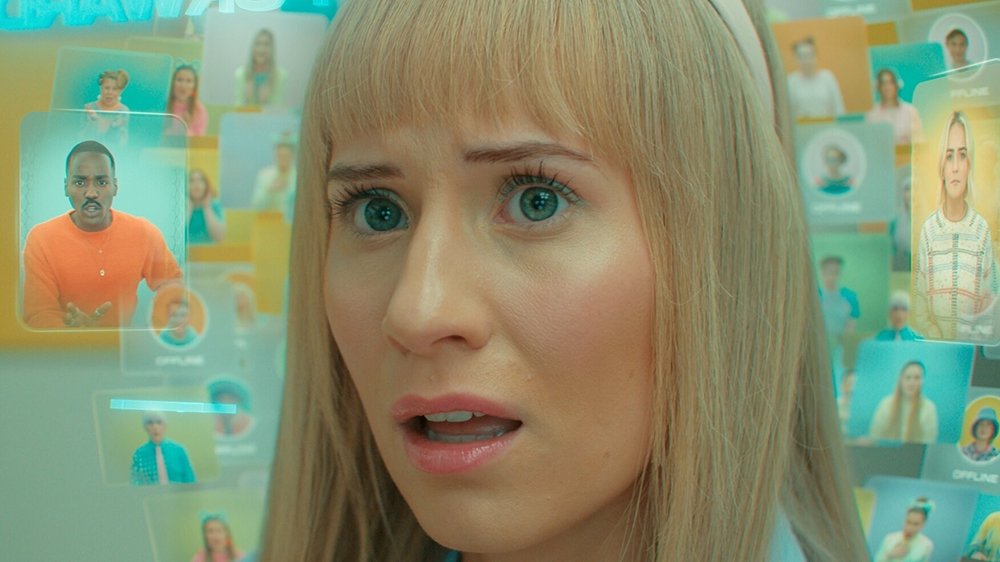 Todo lo que los rodea es redondo o circular, literalmente marcando que viven dentro de una burbuja hegemónica. Lindy (Callie Cooke) es una más dentro de este grupo de chicos privilegiados que cada mañana, apenas despiertan, prenden su dot. El dispositivo la envuelve en sus apps favoritas, conectándola con sus amigos. Gente igual a ella que solo se relaciona con el mundo de forma virtual.