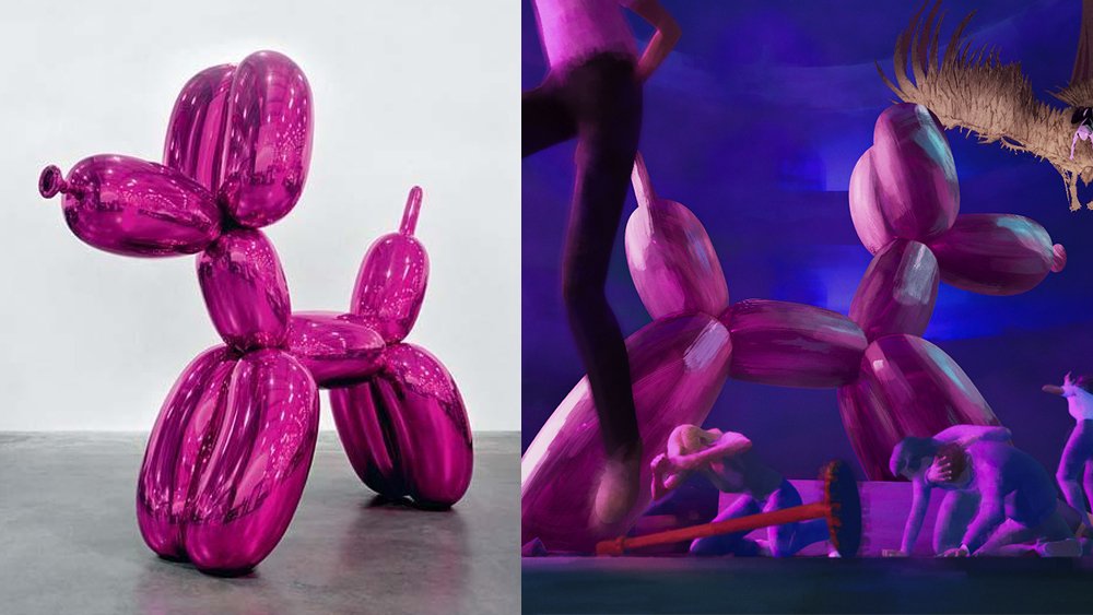 En medio de la batalla los vemos cruzarse con Baloon Dog (1994-2000) una escultura de acero de gran escala que aparenta ser un perro hecho de globos. Jeff Koons, su creador, es muchas veces criticado por sus trabajos aparentemente banales, siendo acusado de apelar solo al coleccionismo y al bolsillo de una elite. Describiendo a la pieza como un Caballo de Troya, una obra que esconde un secreto que solo el espectador puede descifrar.