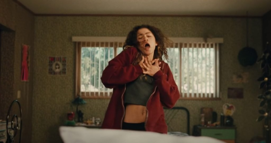 La actuación de Zendaya aquí es sublime, nos muestra que Rue está muerta en vida, al entumecer sus sentimientos con la adicción a las drogas, a partir de la cual logra alcanzar ese contacto con su padre en ese vals cercano a la muerte, «I’m tired». Vemos su desesperación en su abrazo apretado con Labrinth/padre, y vemos el vacío total que atraviesa al mostrarnos la imagen de ella bailando sola, ida, en su habitación.