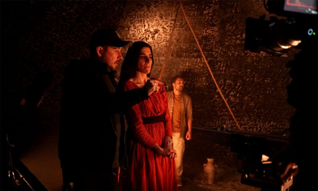 Lee Cronin junto a Hayat Kamille en el set de La posesión de la momia. (2026, Warner Bros. Pictures)