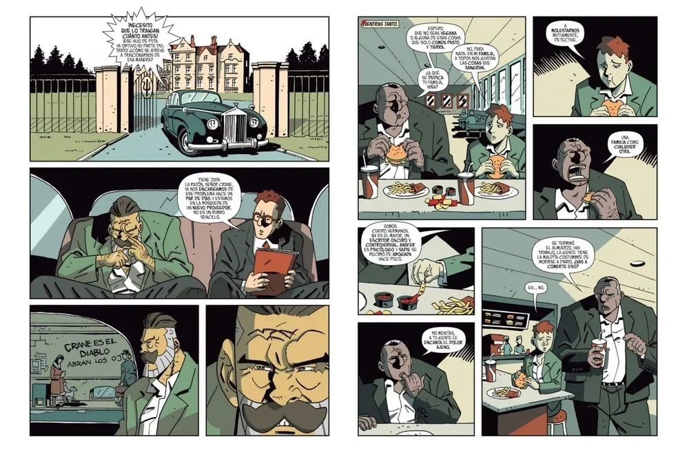 Rodolfo Santullo es un escritor uruguayo que es garantía de calidad. Y el dibujo de Germán Genga, aunque resulte un poco extraño, ayuda a la atmósfera que quiere construir. Sin ser gracioso, distorsiona la realidad y la vuelve en una caricatura, mientras que el color digital nos encierra en una atmósfera que parece de realismo mágico. Una historieta contundente, muy entretenida y que se lee de una sola sentada.