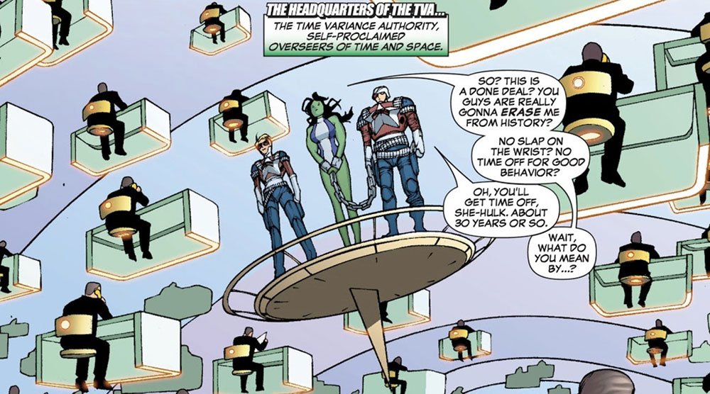 Es en esta etapa en la que se desarrolla a pleno el concepto de policía del tiempo que se plasma en la serie con gran acierto. En el #353 del primer volumen se cuenta cómo, después de que la familia de héroes realice un cambio significativo en la línea temporal, la TVA aparece para juzgarlos. Ahí se introduce por primera vez a Mobius M. Mobius, analista y agente especializado en identificar anomalías, que en la serie es interpretado por Owen Wilson.