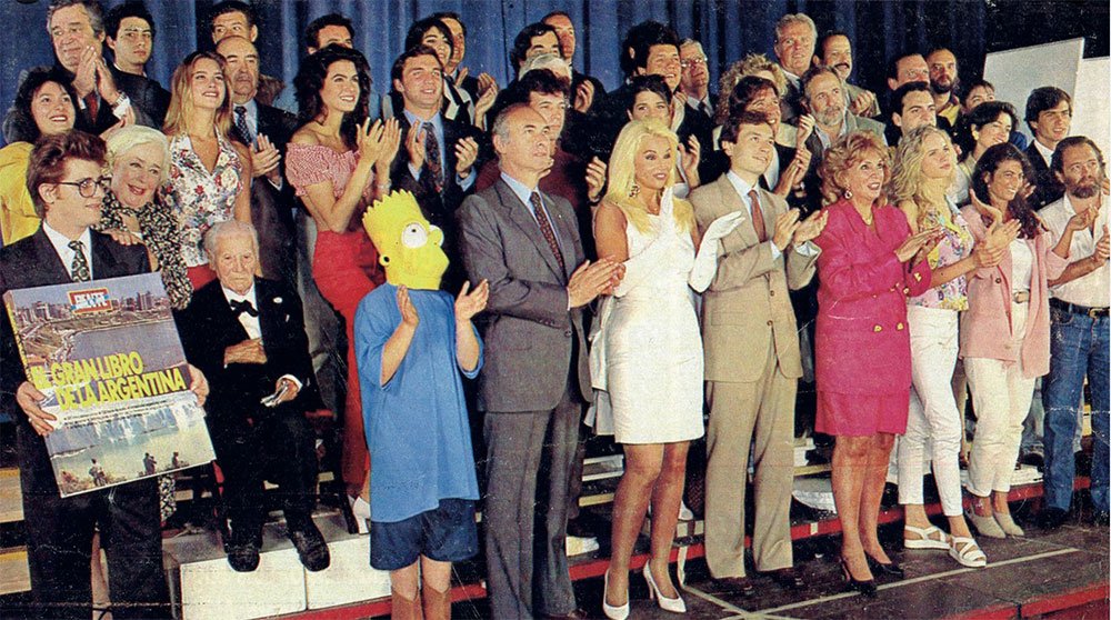 Un ejemplo claro de esto es que Bart Simpson posa como personalidad destacada en el anuario de la revista Gente del año 1992, junto al entonces diputado nacional (y luego futuro presidente), Fernando De La Rúa y nuestra diva Susana Giménez. También hubo hasta un crossover con la popular tira dominical La Familia Benvenuto (1989-1995) en otra de las revistas.