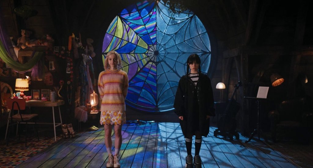 La historia de la primera temporada se estructura en forma de un atrapante murder mystery con varias vueltas de tuerca -quizás una ó dos demás- al mejor estilo Riverdale (2017-), pero con un guion coherente y un gran desarrollo de personaje para nuestra protagonista. Hay algunas subtramas que acompañan su crecimiento y otras que quedan abiertas para un potencial regreso, y un elenco de personajes adolescentes que acompañan muy bien. Sin dudas la MVP de esta temporada es Enid (Emma Myers), la compañera de cuarto de Merlina que no solo aporta muchísimo al desarrollo de la protagonista, sino que tiene su propio arco y una identidad que contrasta absolutamente con la suya, sin embargo la complementa.