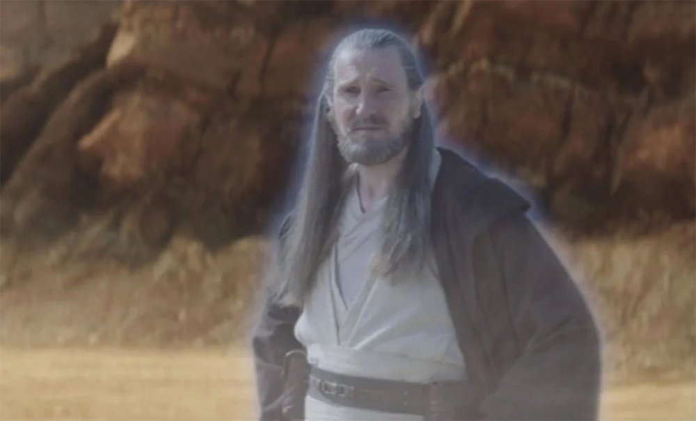 Entonces, es un rescoldo del camino, el fantasma de la fuerza del Maestro Qui-Gon Jinn (Liam Neeson) aparece. Un símbolo evidente sobre la evolución mental e intelectual de Kenobi, que durante toda la serie le intentó contactar, sin conseguirlo jamás. Pero ahora, la figura se alza airosa e invita al Jedi fugitivo a continuar su aprendizaje. La escena es corta, con una dirección correcta y como siempre, Neeson parece perfectamente cómodo en su papel. De modo que la gran pregunta es simple: ¿por qué parece tan artificial la escena? ¿Por cuál motivo el añorado encuentro se siente forzado en el gran mecanismo de nostalgia en que se convirtió la franquicia de Star Wars?
