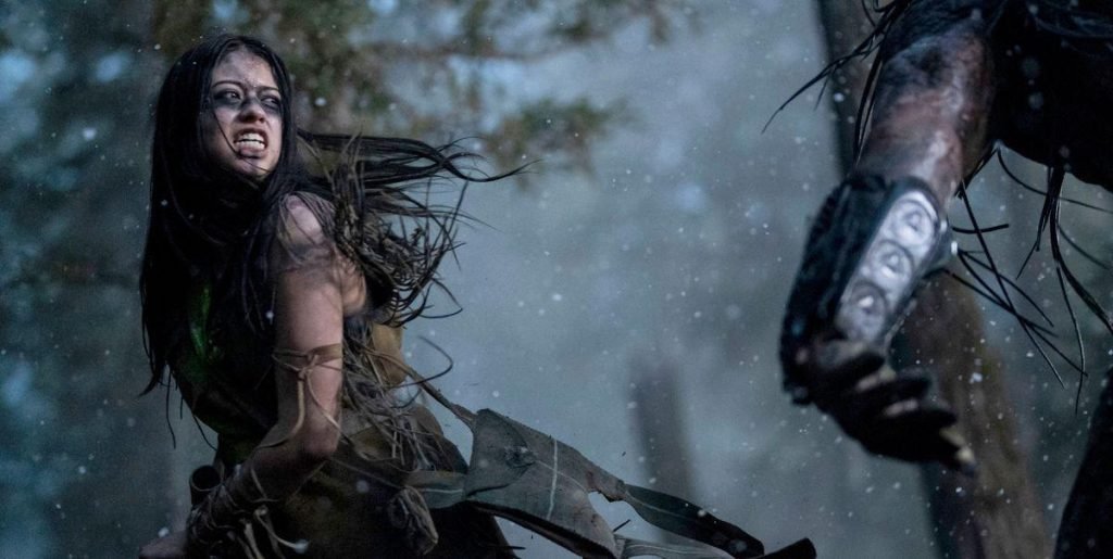 La película se toma el espacio y el tiempo para meditar sobre la batalla de inteligencia, poder y habilidad entre Naru y el depredador. A la vez, logra sostener un recorrido cada vez más frenético, elegante y pulcro a través de una batalla primitiva que tiene algo de mitológica. Sin duda, varios de los mejores momentos del argumento, son cuando enfrenta a Naru con un monstruo implacable. Una reminiscencia de los viejos dioses en lo que su tribu cree y que ella encuentra en la encarnación de una criatura inexplicable. El guion juega con la idea del mito, lo extraño y lo inquietante en medio de una lucha sangrienta. Y acierta al construir un escenario casi mitológico para sus personajes.
