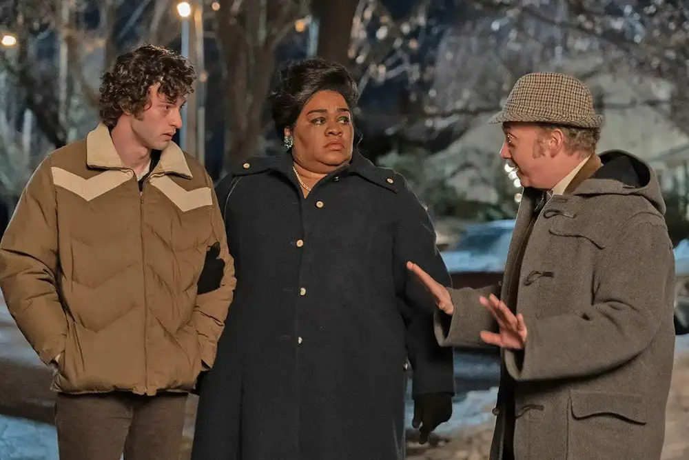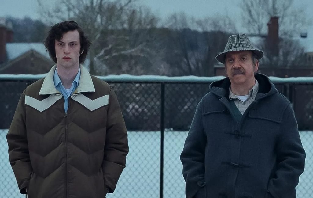 La historia transcurre durante diciembre de 1970. Pero no solo es una película ambientada en los setenta, sino que está hecha para simular haberse filmado en esa década y el efecto es logradísimo. Desde los logos retro de Universal, la paleta de colores, el efecto granulado y gastado del fílmico (aunque por temas de presupuesto fue filmada en formato digital). Hasta los fundidos en las transiciones y la vibra misma de la historia, The Holdovers es una pequeña cápsula de tiempo.