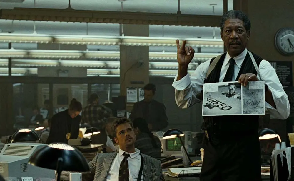 Pero además, el director analizó la naturaleza criminal — el asesino a la sombra — desde una mirada novedosa que cambió los códigos visuales y semánticos que hasta entonces se habían manejado sobre el tema. Dura, estéticamente innovadora, a mitad de camino entre un thriller de suspenso y algo más ambiguo, Seven analiza la naturaleza del mal, emparentando por primera vez con la mirada del asesino como método y percepción de una idea más transgresora y macabra.