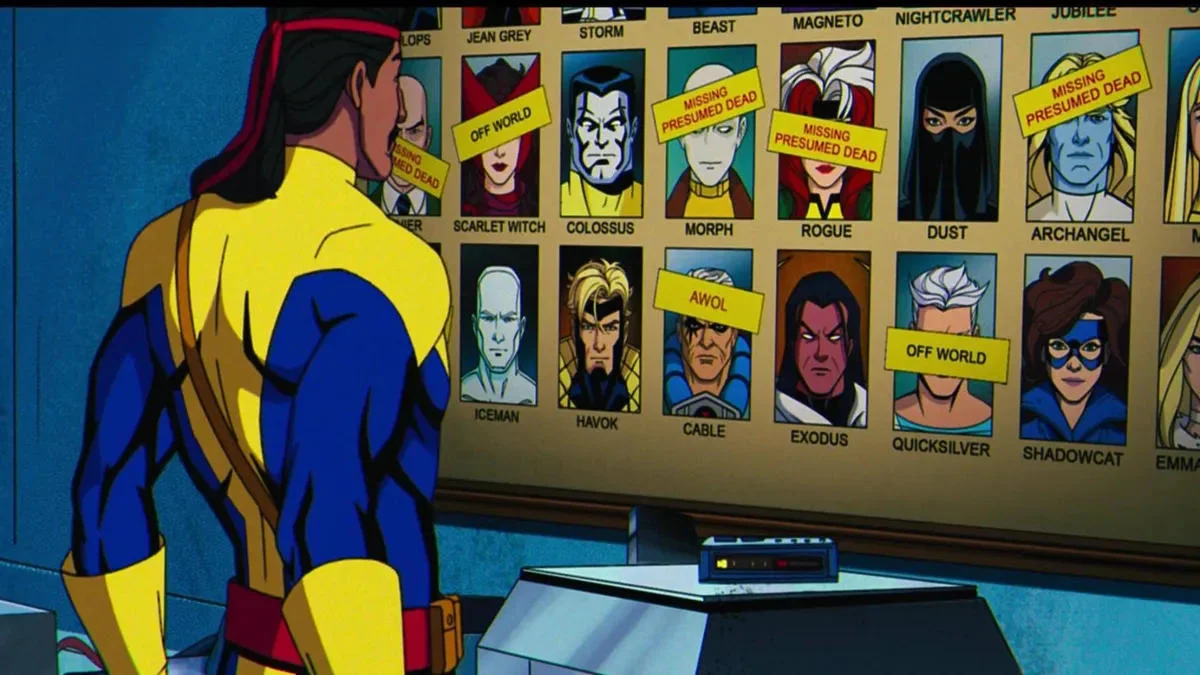 Un afiche en la pared de Forge, claramente inspirado en el comic Days of The Future Past, nos revela que todos los integrantes del equipo se presumen muertos o desaparecidos. Solo Coloso, el villano Exodus, Dust, y Kitty Pride se mantendrían con vida, siendo estos últimos tres personajes que aún no han aparecido en la serie. También se puede ver que QuickSilver y Scarlet Witch se encuentran en el espacio exterior, mientras que Cable se anuncia como ausente sin permiso.